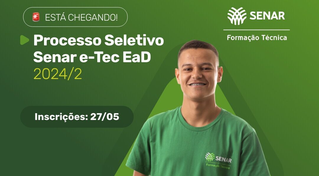 O Serviço Nacional de Aprendizagem Rural (Senar) lançará na próxima segunda-feira (27) o edital para o Processo Seletivo da Formação Técnica EaD 2024.2. As inscrições se estenderão até o dia 02 de julho.