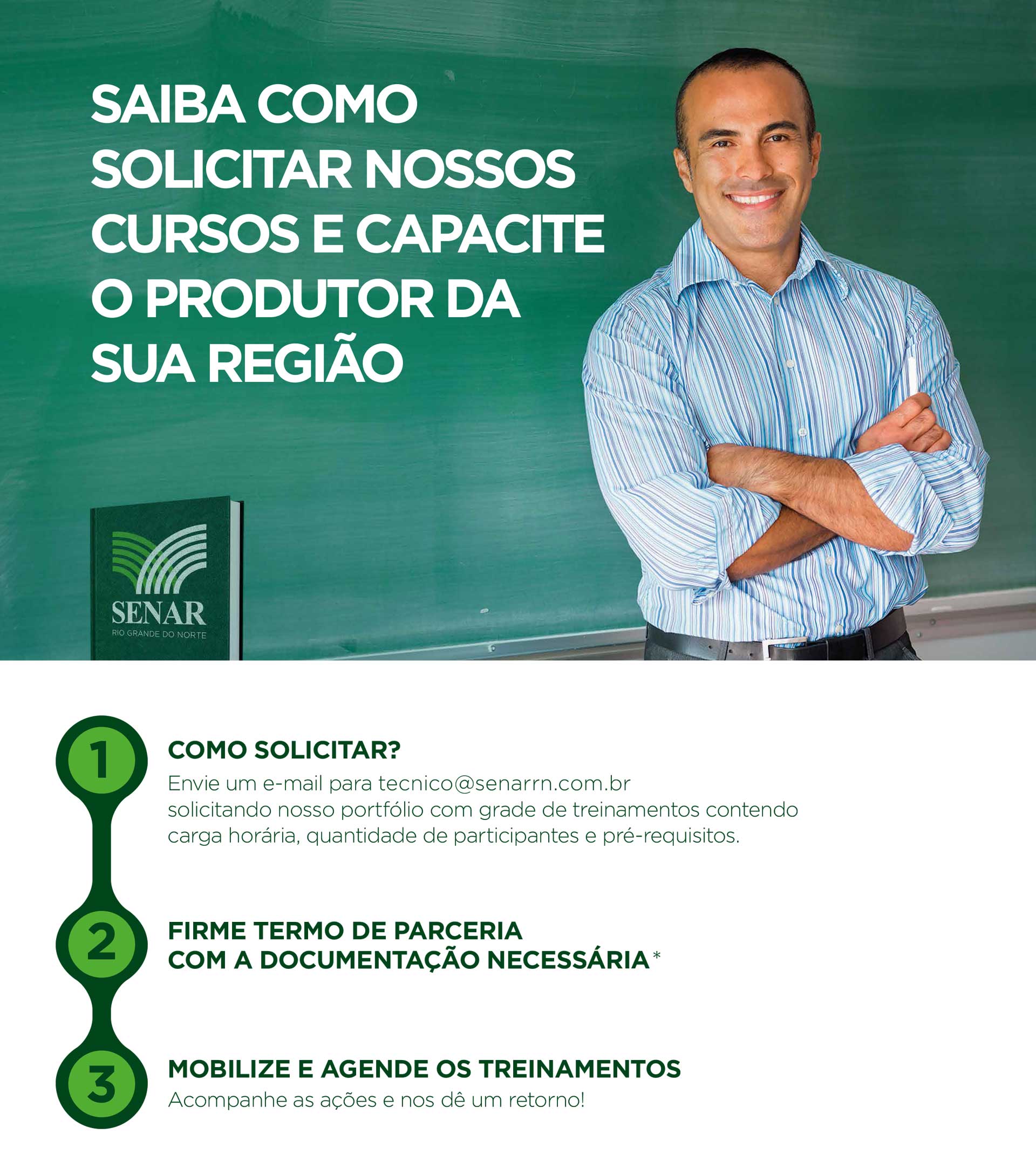 Procure o Sindicato Rural do seu município e informe-se sobre os cursos ou diretamente na sede do SENAR/RN.