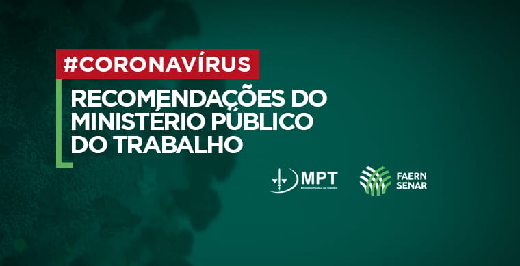 SENAR_RN_Recomendacoes_Coronavirus_MPT_Mar2020.pdfA Federação da Agricultura, Pecuária e Pesca do Rio Grande do Norte – FAERN, em atendimento ao Ofício nº 155/2020, da Procuradoria Regional do Trabalho da 21ª Região, vem por meio deste dar conhecimento aos Dirigentes de Sindicatos Rurais, Empresários/Empregadores Rurais, bem como Produtores Rurais do nosso Estado, da Recomendação nº 11.592/2020, que dispõe sobre medidas temporárias de prevenção ao contágio pelo Coronavírus (COVID-19), voltadas para a proteção dos trabalhadores e trabalhadoras das empresas do setor da agricultura, pecuária e pesca no Rio Grande do Norte.