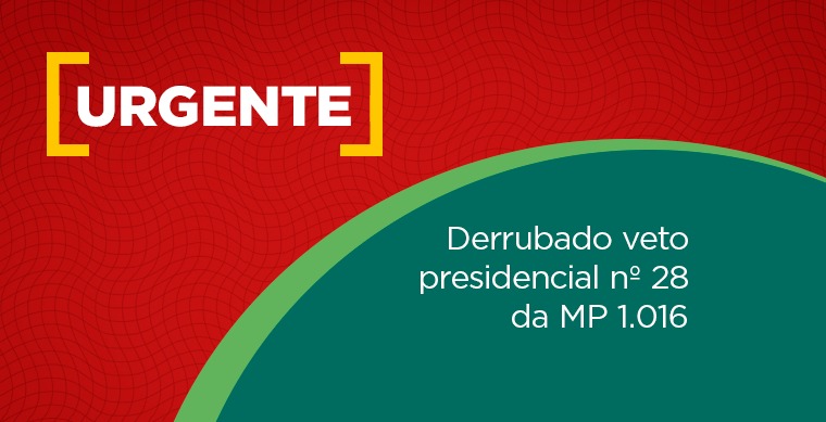 Derrubado veto presidencial nº 28 da MP 1.016