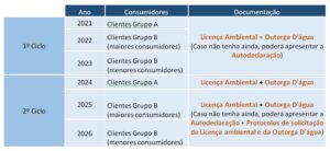 Já os clientes do Grupo A deverão realizar a revisão cadastral apresentando a licença ambiental e outorga de uso da água, quando exigido por lei.