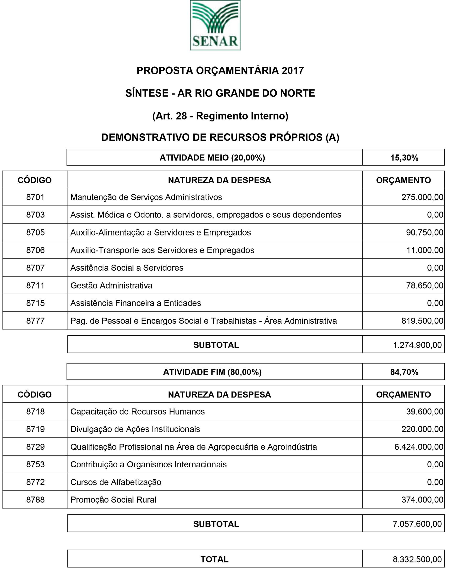 Proposta Receita – Recursos Próprios – 2017