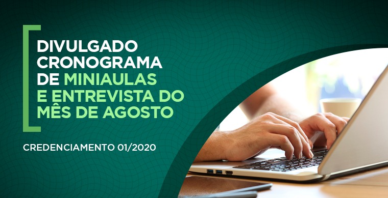 O Serviço Nacional de Aprendizagem Rural do Rio Grande do Norte (SENAR-RN) divulgou o cronograma de miniaulas e entrevista do mês de agosto das empresas que estão participando do Credenciamento 01/2020. O SENAR-RN atenta aos participantes que é obrigatório uso de máscara; a sala está devidamente higienizada e com álcool gel disponível; o instrutor deverá chegar no horário agendado a fim de evitar aglomeração na sala de espera; e cada miniaula deverá ter o tempo de 20 minutos de duração. O cronograma vai de 04 a 27 de agosto.