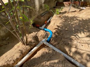 As águas cinzas da Fazenda Lagoa das Cacimbas agora passam por quatro (4) caixas de gordura, descendo por uma tubulação até o filtro com camadas de britas e areia lavada, além de maravalha de madeira, entre outros itens para que a água seja filtrada até chegar aos reservatórios e por último a caixa  de distribuição para que a água siga para a destinação final – a irrigação seja de plantas forrageiras, frutíferas, milheto ou sorgo.
