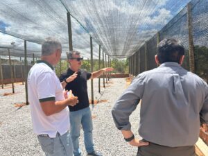 O superintendente do Senar-RN, Luiz Henrique, acompanhado por representantes da Gerência de Aprendizagem, Fernando Souza e Liliane Gomes, realizou uma visita técnica à estufa que esta sendo constrída em Macaíba, para acompanhar o avanço do Projeto de Produção Vegetal e Reintegração Social, nesta quinta-feira (04/12). A iniciativa é desenvolvida em parceria com o Ministério Público do Trabalho (MPT-RN) e instituições do sistema prisional.
